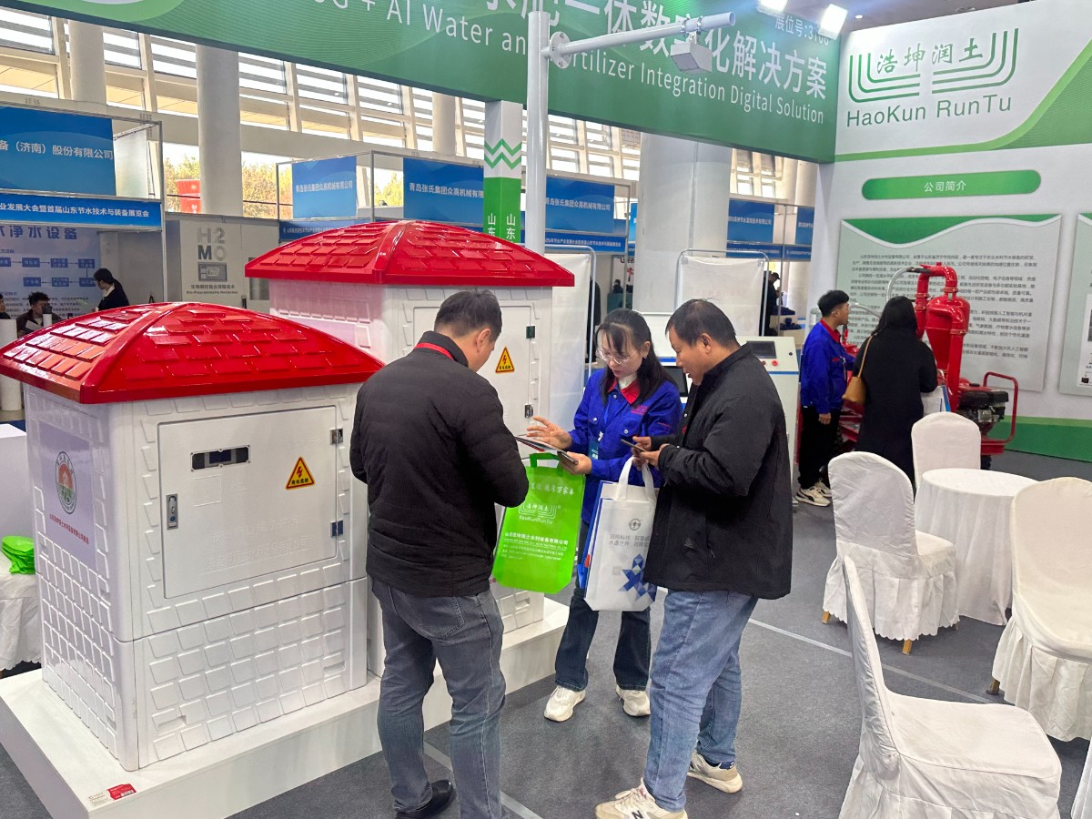 山東省2025年節(jié)水產(chǎn)業(yè)發(fā)展大會(huì)暨首屆山東節(jié)水技術(shù)與裝備展覽會(huì)圓滿成功,浩坤潤(rùn)土公司展會(huì)推出的新款機(jī)井灌溉射頻控制系統(tǒng),水肥一體化系統(tǒng),智能卷盤(pán)式噴灌機(jī)等灌溉設(shè)備深受客戶歡迎,前來(lái)參觀咨詢的客戶絡(luò)繹不絕。很多客戶都與公司達(dá)成合作意向,建立合作關(guān)系。